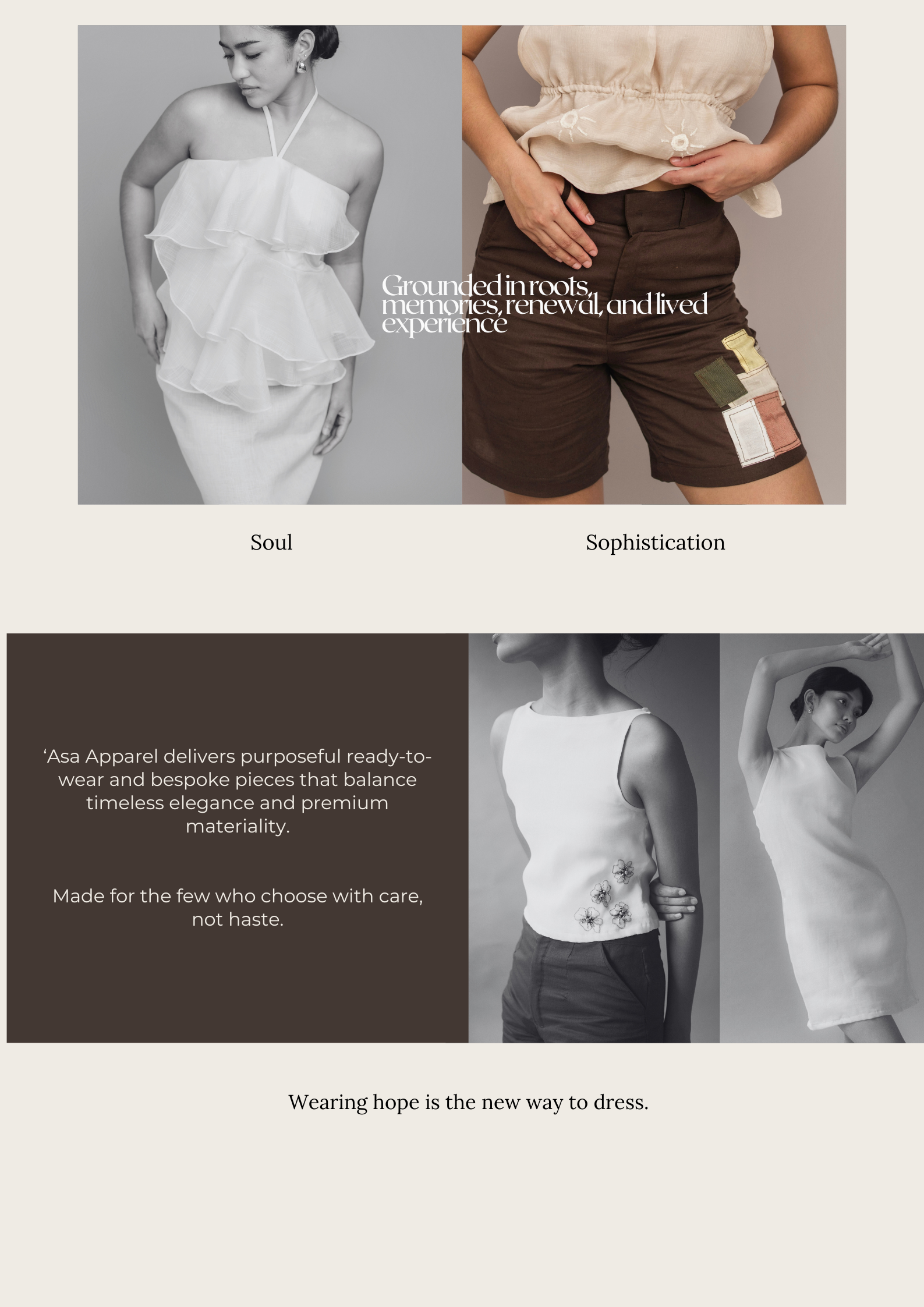 ‘Asa Apparel blends the elegance and consciousness of sustainable fabrics with modern yet timeless designs to dress for life’s milestones and everyday moments.